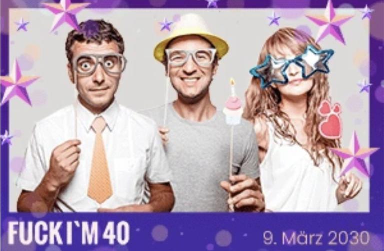 Der absolute Party-Klassiker im Retro-Look! Drei bis vier Bilder untereinander sorgen für den echten Automaten-Flair. Wir passen das Design genau an eure Feier an – mit euren Namen, dem Datum und coolen Grafiken. Ihr habt einen speziellen Motto-Wunsch? Wir setzen ihn um. Sprecht uns einfach an!